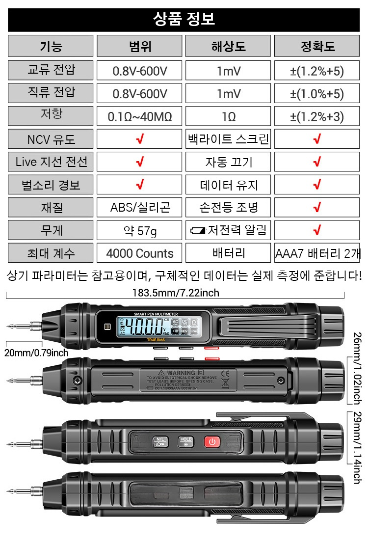 고정밀 휴대용 디지털 멀티미터 검전기 2 in 1