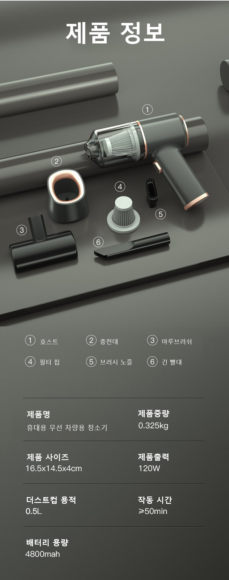 무선 차량용 청소기 구성품 이미지
